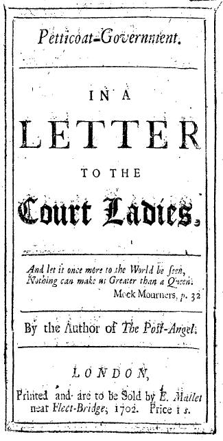 Petticoat-government. In a letter to the court